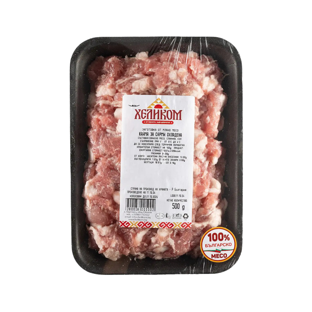 Кайма за сарми– кайма от 100% едросмляно свинско месо подходящо за приготвяне на сарми и различни ястия изискващи едросмляно месо, предлага се в EPS тарелки от 0,250kg, 0,500kg, 1kg, 2kg, 3kg както и в големи разфасовки в пликове
